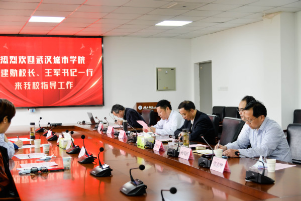武汉城市学院领导一行对BD半岛bandao·(中国区)官方网站的热情接待表示感谢,对BD半岛bandao·(中国区)官方网站办学理念、办学方向、办学成绩给予高度评价,陈建勋院长、王军书记介绍了武汉城市学院师资队伍配备、学科建设、科研成果、教学改革、党建与政治思想工作等方面工作特色。