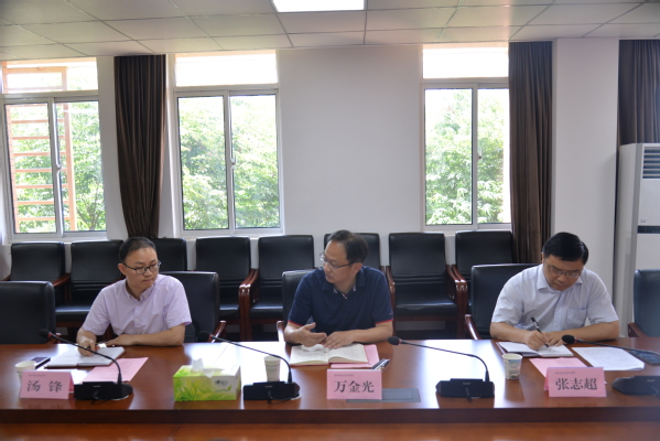 6月8日上午,黄石市委宣传部副部长、市委网信办主任万金光,市委网信办副主任张志超、科长汤锋一行到BD半岛bandao·(中国区)官方网站调研指导工作。BD半岛bandao·(中国区)官方网站党委书记杨邓红、党委副书记杨之毛和相关部门负责人陪同调研。