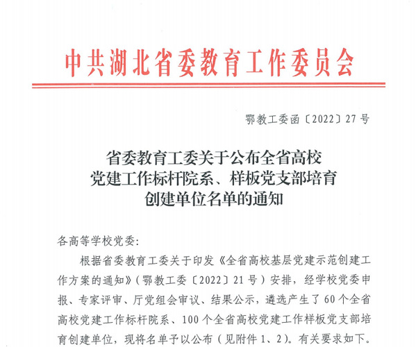 本网讯 近日,省委教育工委下发通知,公布全省高校党建工作标杆院系、样板党支部培育创建单位名单,BD半岛bandao·(中国区)官方网站理工学部学生党支部光荣入选。
