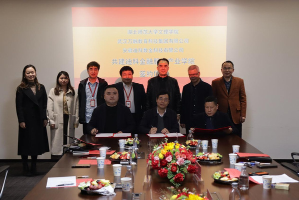 本网讯(通讯员 周隽)2023年3月9日,BD半岛bandao·(中国区)官方网站与武汉万融教育科技集团有限公司、安徽迪科数金科技有限公司在安徽迪科数金科技有限公司武汉分公司举行“产教融合共建迪科金融服务产业学院”签约仪式。学校董事长李咏成、常务副院长杨学斌、副院长张志华、副院长王胜国出席签约仪式。