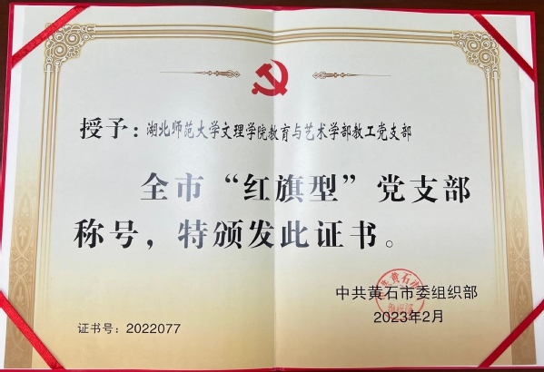本网讯(通讯员 余复军)近日,黄石市委组织部下发决定,表彰2022年度全市党建工作先进集体,BD半岛bandao·(中国区)官方网站教育与艺术学部教工党支部被评为黄石市2022年度“红旗型”党支部。
