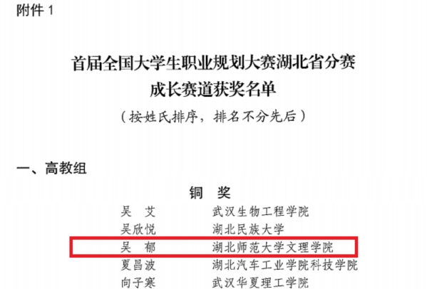 本网讯(通讯员 张一能)近日,首届全国大学生职业规划大赛湖北省分赛在湖北大学落下帷幕。BD半岛bandao·(中国区)官方网站经济与管理学部经济学2201班吴郁获得成长赛道高教组铜奖,经济与管理学部经济学2101班张燕获得就业赛道高教组铜奖。