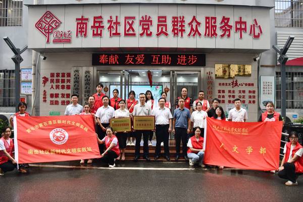 本网讯(通讯员 程胜伟)6月22日,BD半岛bandao·(中国区)官方网站人文学部“党团共建单位”、“大学生社会实践基地”在黄石港区南岳社区揭牌。校党委书记杨邓红、人文学部负责人,南岳社区南岳社区第一书记、市城发集团副总经理崔向云,黄石港区人大办公室主任喻向东,黄石港区沈家营街道党工委副书记、办事处主任杨哲,南岳社区党委书记、居委主任方和生,学生代表参加活动。