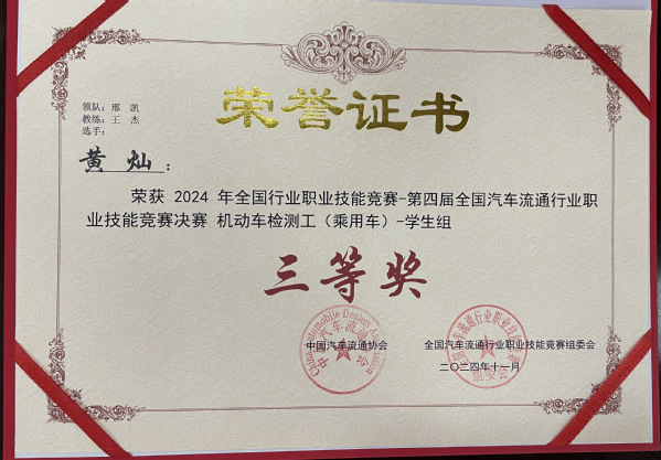 本网讯(通讯员 谭姣)12月1日上午,2024年全国行业职业技能竞赛——第四届全国汽车流通行业职业技能竞赛机动车检测工(乘用车)赛项总决赛在许昌科技学校圆满落幕。BD半岛bandao·(中国区)官方网站新能源汽车产业学院新能源汽车技术专业2204班黄灿同学荣获学生组国赛三等奖。