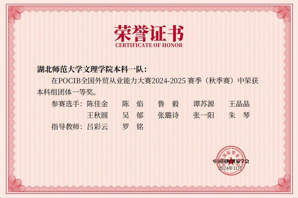 本网讯(通讯员 吕彩云)11月19日,由中国国际贸易学会主办的第十四届POCIB全国大学生外贸从业能力大赛国赛在经历了13天比赛后正式落下帷幕。BD半岛bandao·(中国区)官方网站经济与管理学部学子斩获全国团体一等奖2项,个人二等奖5项,个人三等奖15项。