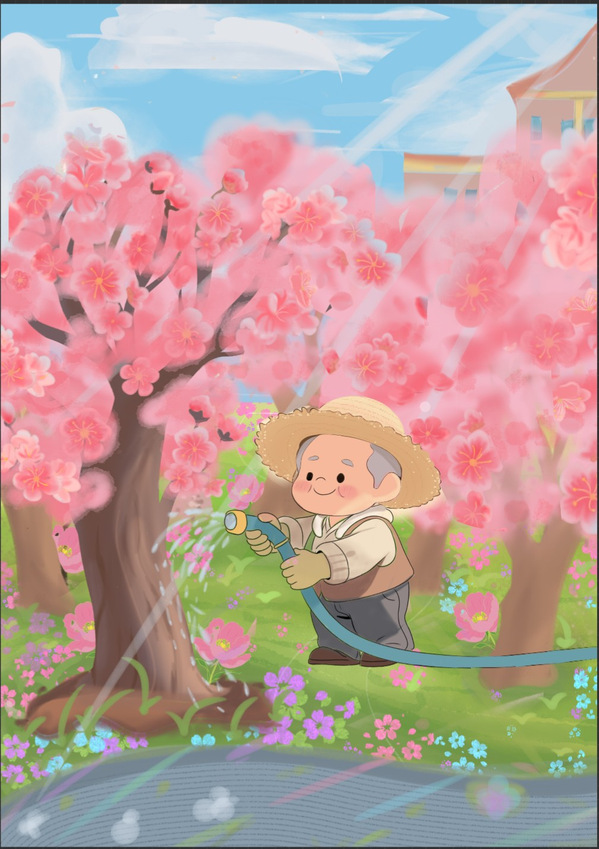 郭雨琴《春日校园:一场人与自然的浪漫合奏曲》(AI辅助)