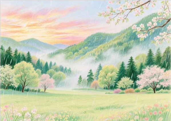 储奕廷《雨弦风笔:细数杨柳微雨中的生命哲思》(AI辅助)