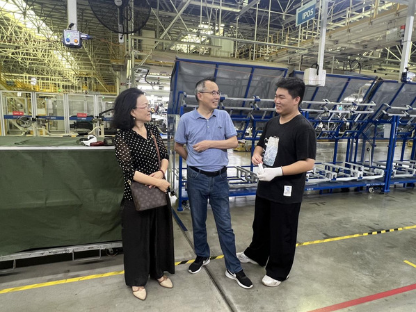 在吉利汽车生产车间,考察组深入各生产线实地观摩。看到学生们正专注进行汽车零部件精密组装与整车性能检测,王胜国一行细致询问学生的操作规范与岗位职责,现场给予专业指导。教务部副部长胡敏表示,学校将持续完善实习管理机制,确保学生在真实生产环境中切实提升实践能力和问题解决能力。