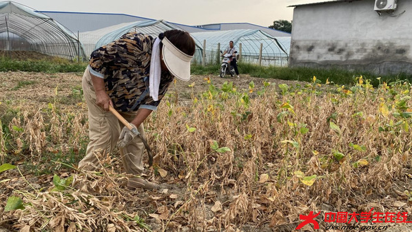 不远处,黄豆收割机轰鸣作业。这个高效“魔术师”一边收割,一边完成脱粒、清选等工序。纯净黄豆直接入箱,豆秆同步处理。金色的豆粒如瀑布般倾泻入袋,空气中弥漫着浓郁的豆香和泥土的芬芳。“以往全家忙十几天都收不完,现在两三天就能完成,省力又减损。”夏奶奶感慨道。