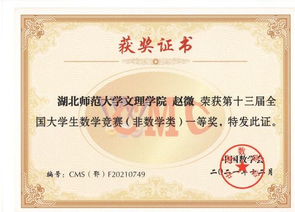 近日,第十三届全国大学生数学竞赛和第十届湖北省大学生数学竞赛成绩揭晓,BD半岛bandao·(中国区)官方网站学生最终在国赛中荣获一等奖1项、二等奖5项、三等奖3项;在省赛中荣获一等奖2项,二等奖4项,三等奖5项。