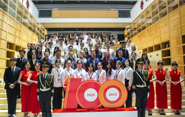 大会在高亢激昂的团歌声中拉开帷幕。新发展团员举行了集中宣誓仪式,校团委书记陈荟芸宣读了《关于2021-2022年度共青团先进集体和先进个人的表彰决定》,杨之毛副书记等领导分别为市级、校级“优秀共青团员”、“优秀共青团干部”、“红旗团支部”和“红旗团总支”获奖代表颁奖。市级优秀共青团干部尹誉霖、优秀学生代表武如钰分别作了代表发言。最后,本次五四表彰大会在《没有新共产党就没有新中国》的嘹亮歌声中圆满落下帷幕。