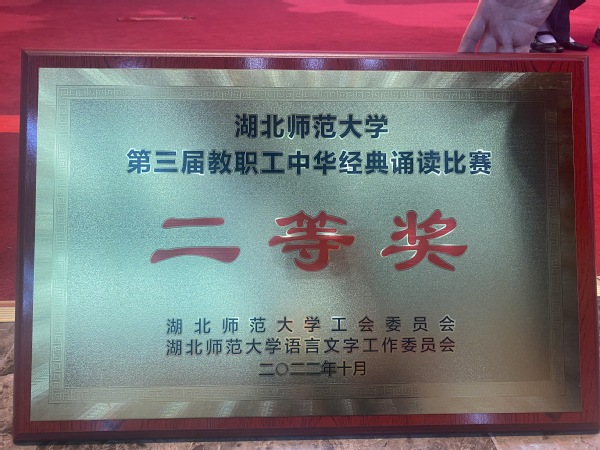 本网讯(通讯员 柯康敏)10月27日下午,湖北师范大学第三届教职工中华经典诵读在教育大楼学术报告厅举行,BD半岛bandao·(中国区)官方网站人文学部丁书嫚老师朗诵的作品《读中国》荣获二等奖。