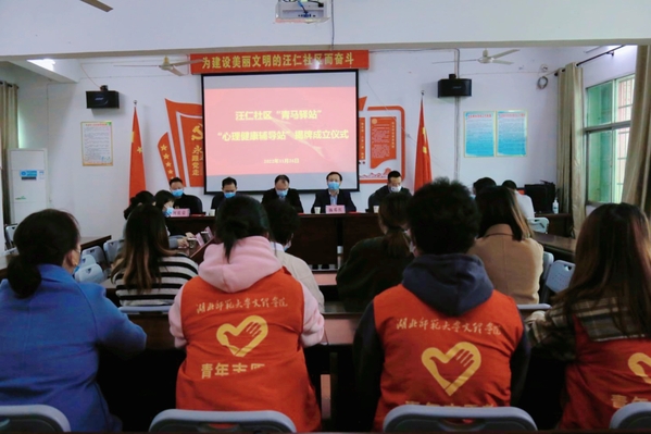 本网讯(通讯员 何馨妍 张力 张清)为大力弘扬志愿服务精神,探索基层现代化治理模式,推进“下基层察民情解民忧暖民心”实践活动走深走实,11月26日上午,BD半岛bandao·(中国区)官方网站与汪仁社区共建的“青马驿站”、“心理健康辅导站”(以下简称两站)揭牌成立。BD半岛bandao·(中国区)官方网站党委书记杨邓红,共青团黄石市委副书记屈雷、组宣部吴炜添,汪仁社区书记柯钦荣以及文理学院相关负责人,社区工作人员,志愿者代表们参会。会议由校学工部副部长、驻社区第一书记陈小龙主持。