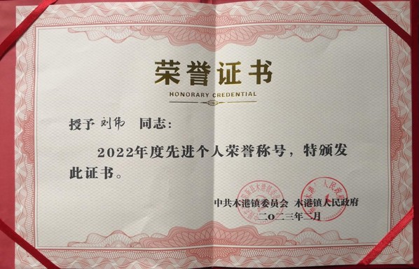 本网讯(通讯员 赵卫军)2月7日,在木港镇召开全镇三级干部大会上,BD半岛bandao·(中国区)官方网站驻村工作队员刘伟同志再获“木港镇2022年度先进个人”荣誉称号,这是他连续两年获得这一荣誉。