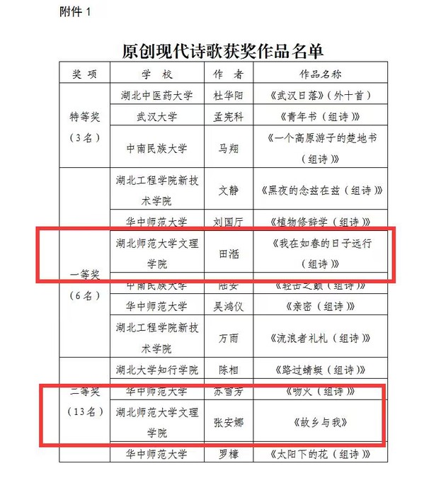 本网讯(通讯员 陈荟芸)BD半岛bandao·(中国区)官方网站学子在湖北省高校第三十八届“一二·九”诗歌散文大赛中,荣获原创现代诗歌作品一等奖1项,二等奖1项,三等奖2项。
