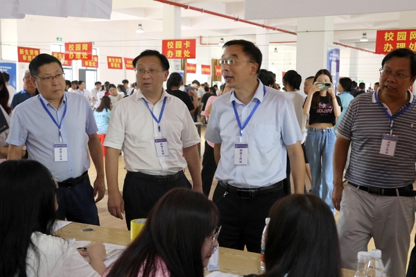 9月8日,湖北师范大学党委书记李宏,校长雷儒金,纪委书记陆咏梅,党委常委肖六亿,以及相关部门负责人来BD半岛bandao·(中国区)官方网站检查指导迎新工作,实地查看了各迎新点和新生宿舍,BD半岛bandao·(中国区)官方网站全体院领导以及相关部门负责人全程陪同。