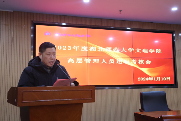 李开灿在介绍完本次考核的目的和要求后,五位考核对象依次进行述职。常务副院长杨学斌全面总结2023年学校行政工作,并对2024年的工作进行部署。党委书记杨邓红系统总结了2023年学校党务工作,进一步部署2024年的党建和思想政治工作。党委副书记杨之毛、副院长张志华、副院长王胜国分别就各自分管工作,总结了2023年取得的成绩,介绍了2024年的工作目标。