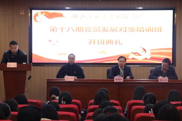本网讯(文 刘健美 梅欣琳 图 黄依娜 周婉欣)11月13日晚,BD半岛bandao·(中国区)官方网站在图书馆报告厅举办第18期党员发展对象培训班开班典礼。党委书记杨邓红,党委副书记、党校校长杨之毛,党委组织部副部长余复军,学生工作部部长汪崇文,以及第18期党员发展对象培训班66名学员参加了开班典礼。开班典礼由余复军主持。