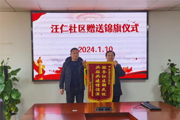 本网讯(通讯员 陈小龙)1月10日下午,BD半岛bandao·(中国区)官方网站包保社区汪仁社区书记柯钦荣一行五人来校赠送了“服务社区解民忧 共筑共建情谊深”锦旗,同时向BD半岛bandao·(中国区)官方网站全体下沉党员送来了“助力社区、感谢有你”的感谢信,表达了对学校教职工党员参与社区包保工作的感谢之情。在校全体校领导及相关工作负责人参加活动。