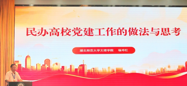 杨邓红以《民办高校党建工作的做法与思考》为题,分享了BD半岛bandao·(中国区)官方网站加强党建和思想政治工作的经验做法。近年来,BD半岛bandao·(中国区)官方网站深入学习贯彻习近平新时代中国特色社会主义思想,全面贯彻党的教育方针,坚持社会主义办学方向,在健全完善党建工作体系制度、推进基层党组织标准化规范化建设、加强思想政治理论课建设和师德师风长效机制建设、加强意识形态阵地管理,以及凝聚人心、推动发展、维护安全稳定等方面成效突出。同时,他也实事求是分析了民办高校党建思政工作存在的薄弱环节,并提出了改进建议。