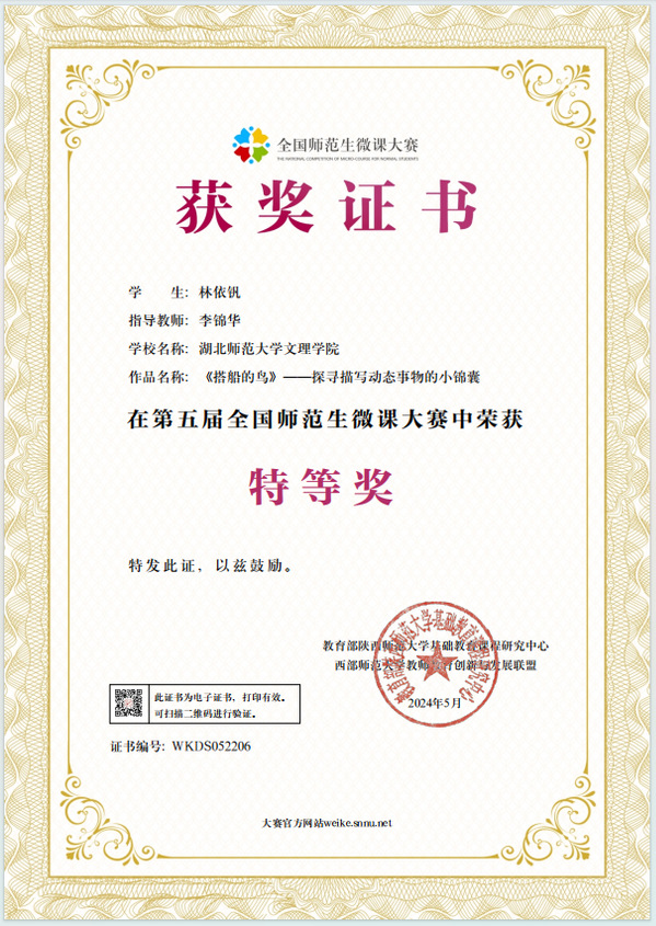 本网讯(通讯员 黄蓓佳)近日,第五届全国师范生微课大赛获奖名单公布。BD半岛bandao·(中国区)官方网站选拔推荐的微课参赛作品获得佳绩,荣获特等奖1个、一等奖1个、二等奖8个、优秀奖5个,BD半岛bandao·(中国区)官方网站荣获“优秀组织单位”,教育与艺术学部李锦华荣获“优秀指导教师”称号。