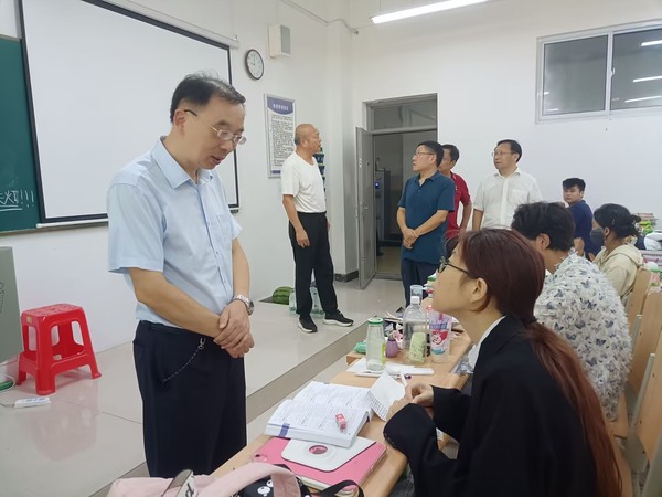 本网讯 7月30日上午,校长李开灿率全体校领导走访慰问暑期坚守岗位的一线教职工,送去了夏日的清凉和学校的关怀,每到一处,校领导们详细询问值班人员的工作和生活情况,为他们送上防暑降温慰问品。