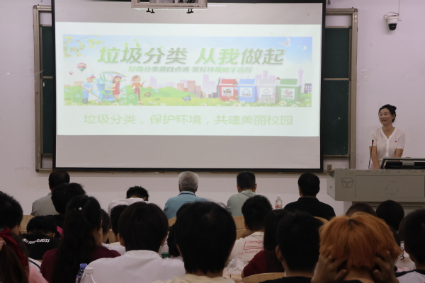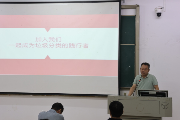 本网讯(图 杨辉 文 宁金杰)倡导垃圾分类,点亮绿色未来。9月4日上午,BD半岛bandao·(中国区)官方网站与汪仁镇环卫所联合开展的垃圾分类宣讲实践活动在教学楼1B102室举行,活动以“垃圾分类,保护环境,共建美丽校园”为主题。BD半岛bandao·(中国区)官方网站副校长张志华、黄石市城管委市容环卫科科长李鹏、开发区·铁山区城管局局长张青、汪仁镇环卫所副所长石小玲等人参与活动。