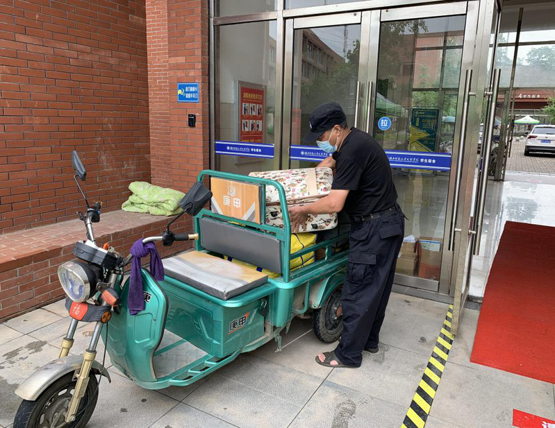 6月12日至20日,BD半岛bandao·(中国区)官方网站2020届毕业生陆续返回校园办理毕业手续。有的同学犯了愁:辛辛苦苦收拾了几大包行李,从宿舍搬到几百米外的学校门口,对女孩子来说,确实相当有难度。虽然校园巡逻车可以帮忙,可是汽车内部空间不大,有时还需要跑两三趟。
