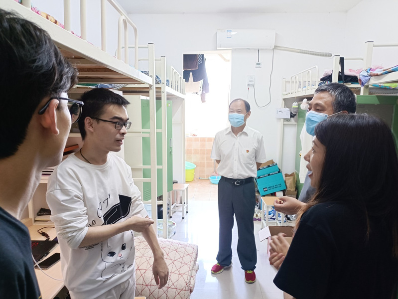 为认真贯彻落实省教育厅办公室《关于开展2022年教育系统“安全生产月”活动的通知》精神,扎实做好暑假前和暑假期间的校园安全管理工作,及时消除各类安全隐患,积极有效预防各类安全事故发生,切实维护校园安全稳定。连日来,各学部主任(书记)带头深入学生宿舍,开展安全工作大检查,并看望学生。