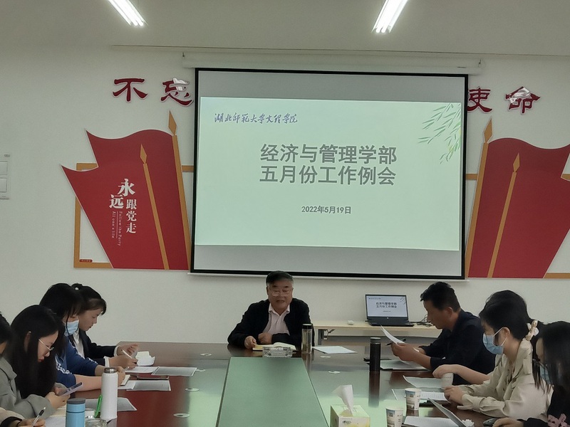 2022519日下午2点半,经济与管理学部于2号实验楼213会议室召开了学部5月份工作例会,学部全体教职工参加,此次会议由学部主任商树松主持。