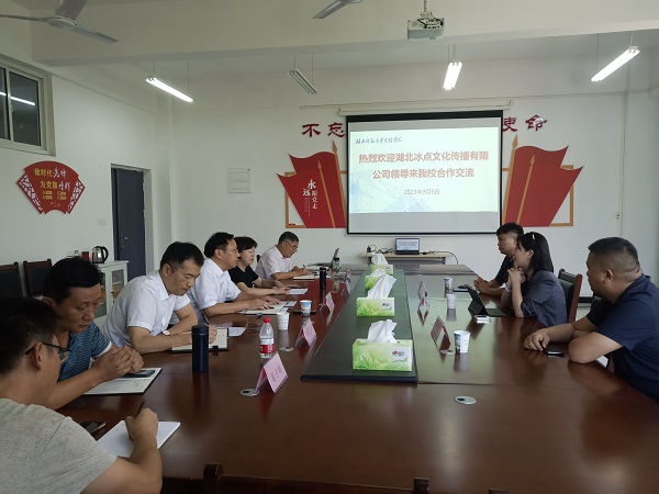 9月8日下午,湖北冰点文化传播有限公司总经理董俊、严昌、兰清一行3人来BD半岛bandao·(中国区)官方网站考察交流,洽谈关于校企合作的事宜。校党委书记杨邓红以及经济与管理学部主任商树松、专业负责人葛子明、专任教师聂亚珍、张锐出席了接待活动。