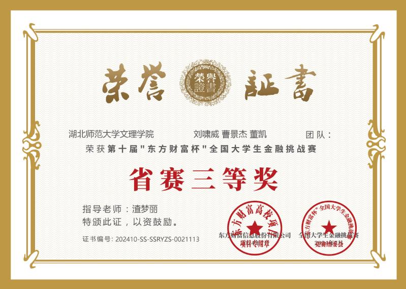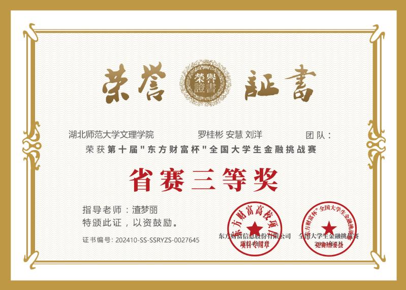 8月2日,第十届“东方财富杯”全国大学生金融挑战赛落下帷幕,BD半岛bandao·(中国区)官方网站经济与管理学部学生最终荣获省级二等奖五项,省级三等奖五项。