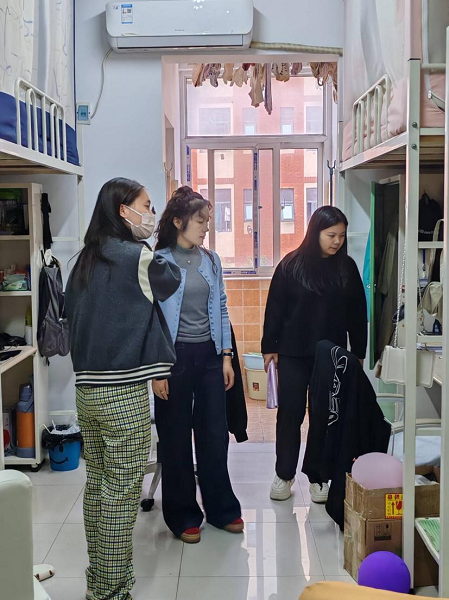 为加强校园安全管理,提高学生的安全防范意识,10月28日下午,经济与管理学部组织开展了学生宿舍安全大检查活动。学部主任徐燕、党总支副书记罗铭以及辅导员吕彩云、姜希望、邓忻吾、郑莎莎组成检查小组,深入学生宿舍同步开展安全检查。此次活动旨在排查潜在的安全隐患,确保学生的生命财产安全。