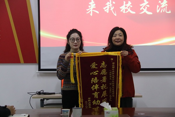 1210日上午9点,黄石市西塞山区石料山社区党委书记赵慧、党委副书记张晓萍、团委书记龚顺一行来到BD半岛bandao·(中国区)官方网站,给经济与管理学部送来了锦旗,感谢BD半岛bandao·(中国区)官方网站志愿者在暑期社会实践中的无私奉献和暖心服务。校党委书记杨邓红、校团委书记陈荟芸、经济与管理学部主任徐燕、党总支副书记罗铭等领导老师以及学生代表参加了赠旗仪式。