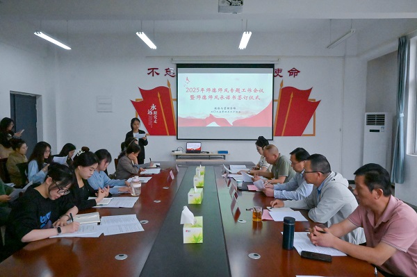 随后,组织全体教师签订了《师德师风承诺书》。承诺书从政治立场、课堂教学、学术诚信、廉洁从教等方面明确责任要求,为教师行为划定标尺,强化自我约束。