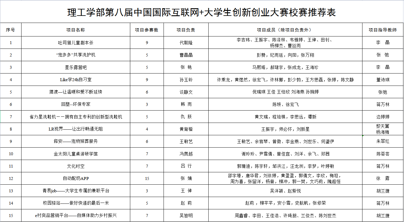 2022426日,理工学部接到第八届中国国际“互联网+”大学生创新创业大赛的工作通知后,经过学部开会讨论,辅导员组织学生参赛小组,专任教师认领小组并进行企业计划书和网报流程的指导。514日,学部收集了100组学生的企业计划书,抹去指导老师和专业班级信息,并对企业计划书进行了随机编号。515日,学部邀请2专业的评委进行企业计划书的初选