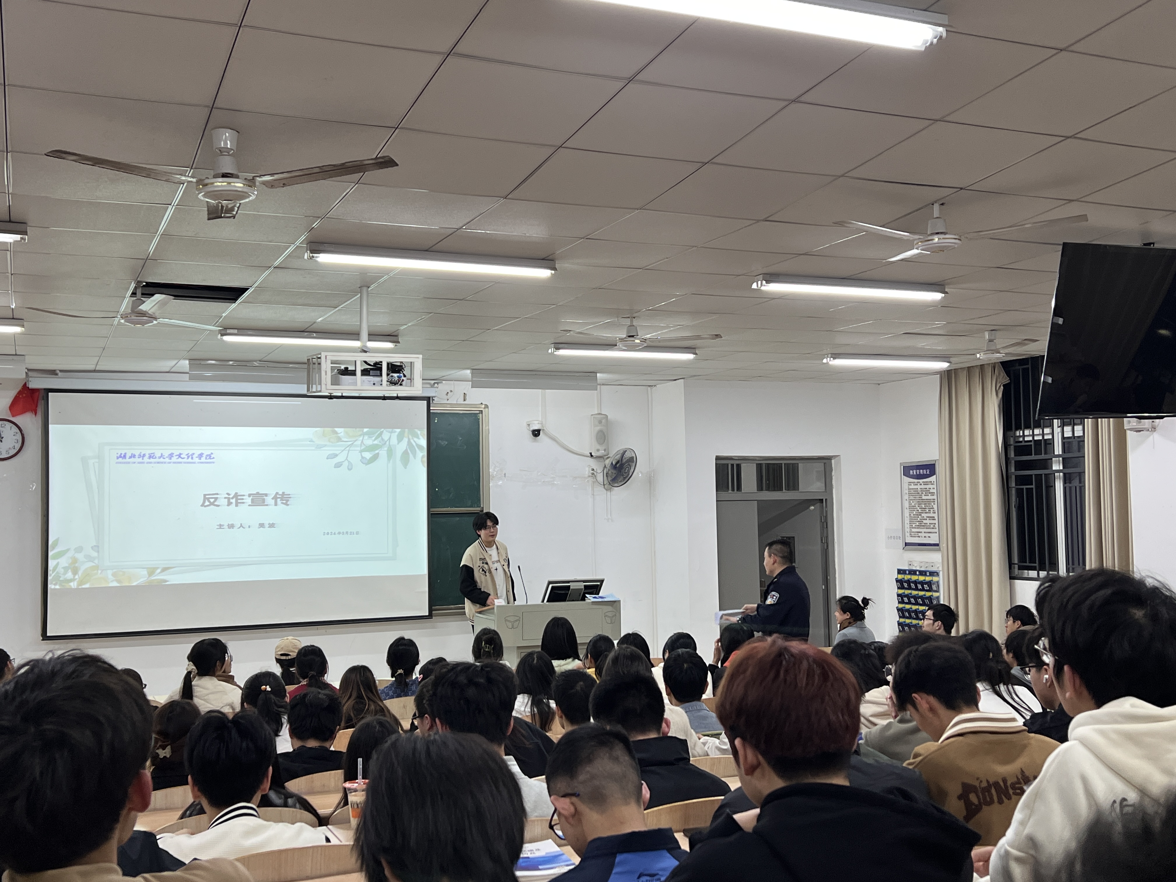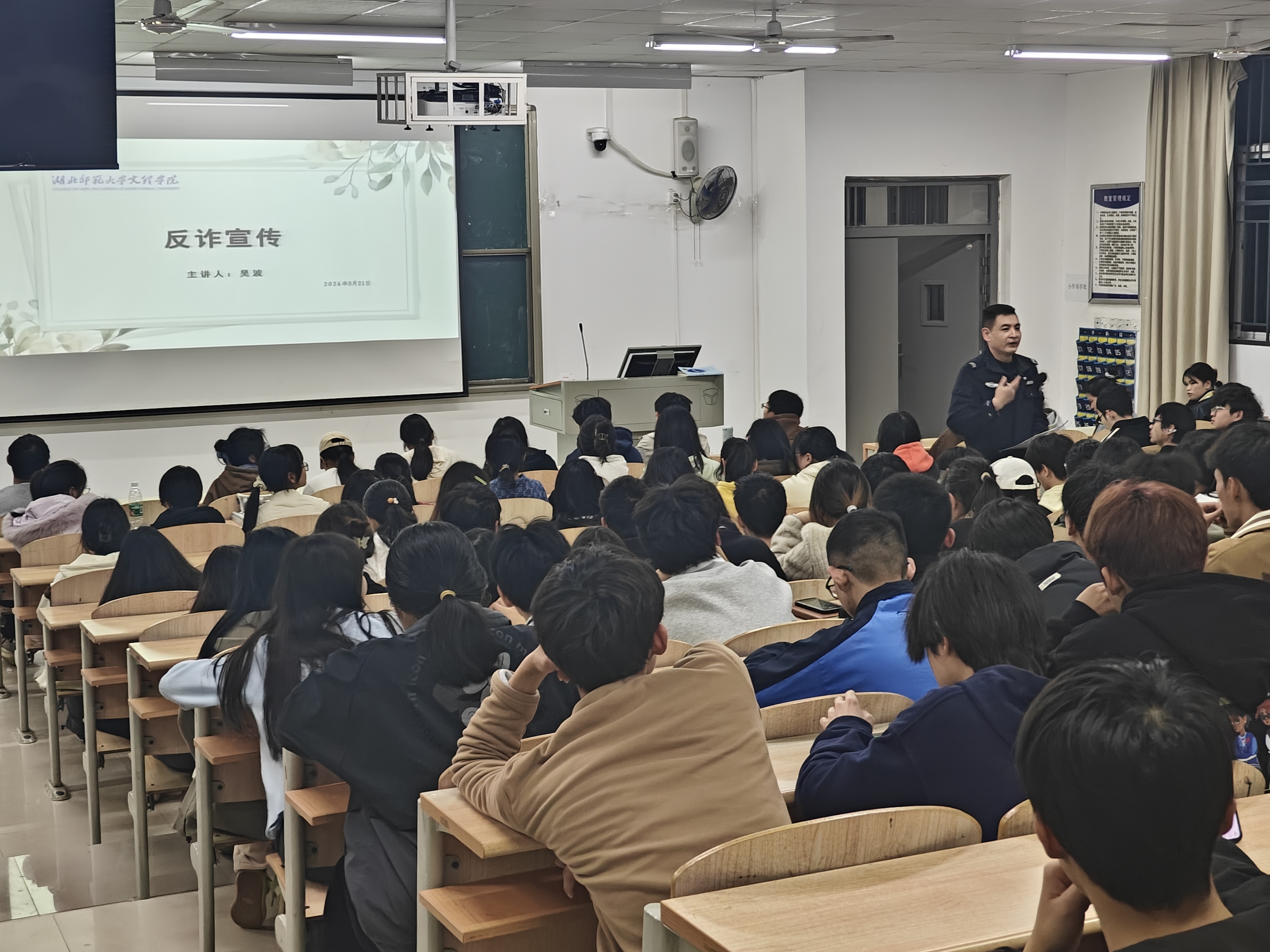 为深入推动BD半岛bandao·(中国区)官方网站创建平安校园工作,不断提升广大师生防诈意识和防骗能力,3月21日晚上7时,理工学部特邀汪仁派出所民警在教学楼1B-101,为约200名青年学子举行了“反电信诈骗”主题讲座,理工学部团总支副书记李哲昊老师,辅导员刘婉婉老师、胡兰捷老师、陆曦老师参加了活动。
