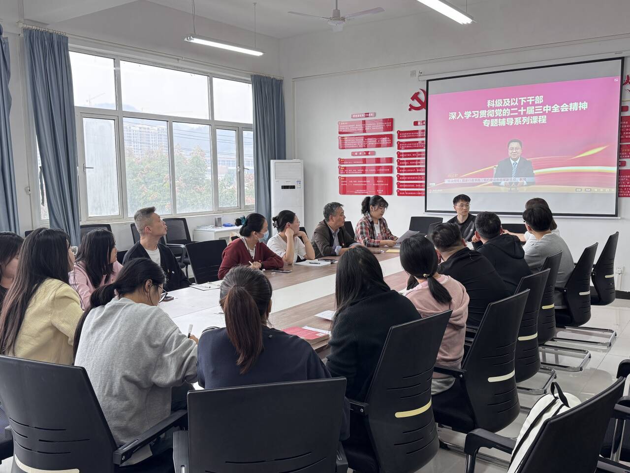 20241114日下午,理工学部教工党支部组织全体教工党员开展了“学习贯彻党的二十届三中全会精神”培训学习。