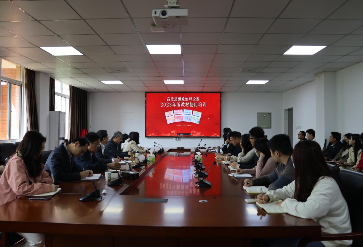 为贯彻落实教育部《关于做好高校思想政治理论课2023年版教材使用培训的通知》有关工作的通知要求,马克思主义学部于2023年4月27日在行政楼303会议室设立高校分会场,参与全国高校思想政治理论课教材使用培训会开班式。本次会议由马克思主义学部主任周青山主持,校党委书记杨邓红、校党委副书记杨之毛以及全体思政课教师参会。