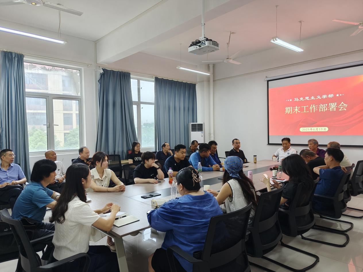 2025年6月19日中午,马克思主义学部在3号实验楼208会议室召开开展安全生产教育活动暨期末工作部署会,学部全体教职工参加,会议由学部主任周青山主持。