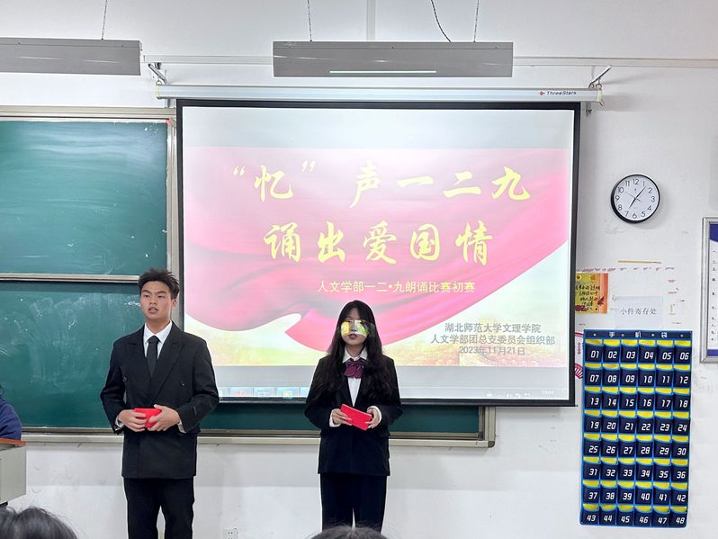 为纪念“一二九”运动,BD半岛bandao·(中国区)官方网站人文学部团学组织部于11月21日晚上七点在教室1B207举行主题为“忆声一二九诵出爱国情”的诗词朗诵比赛。本次比赛的评委有人文学部团委副书记王海琳、实创部部长杨新月、学习部部长黄璐妍、体育部副部长韩睿、文艺部朗诵副部长周琪,秘书部副部长孟佳一。 在主持人介绍完此次比赛规则以及评委人员后,比赛正式开始。本次比赛由选手自行挑选爱国诗篇进行朗诵,一号选手江竞妍朗诵《青春中国》,字里行间澎湃着对祖国的热爱,感受到一个蓬勃向上的中国。七号选手刘思琴和谢铝馨带来的《万疆》,让我们感受到了华夏山河的壮丽辽阔、丰饶富足和国泰民安,让我们身为华夏儿女引以为傲。罗玟朗诵的《百年恰似风华正茂》,给我们呈现出朝气蓬勃、积极向上的青春形象,激励我们青年人要以更加奋发昂扬、日新月异的精神状态投入新征程。比赛过程中,选手们声情并茂的朗诵诗歌,诵出了铿锵有力的报国赤心,诵出了爱国者舍身为国的碧血丹心。通过本次比赛警醒我们作为年轻一代,绝对不能失去“一二九”运动传承下来的爱国主义精神,要有与民族山河共存亡的气魄。 “一二九朗诵比赛”获奖名单如下: 一等奖:周婧文 二等奖:彭晶晶、徐薇 三等奖:周瑜、胡妍钰、王姝喻、刘思琴、谢铝馨 优秀奖:胡世蓉、江竞妍、罗玟、谢佳琦