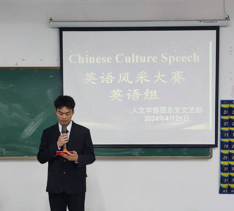 英语作桥梁,文化传世界。为丰富校园文化生活,创设良好的英语活动氛围,提升同学们对英语学习的兴趣,给学生提供展示个性、发挥特长、展现英语风采的平台,人文学部于4月25日晚在教学楼 1A201、1A203举办以“Chinese Culture Speaks”为主题的英语风采大赛。此次活动旨在激发大学生对祖国、对中华传统文化的热爱之情,提升学生的文化自信,传递中国文化正能量。