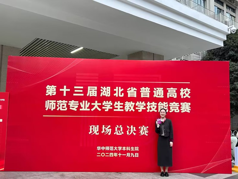 2024年11月9日,第十三届湖北省普通高校师范专业大学生教学技能竞赛决赛在华中师范大学举行,此次共有70名选手入围决赛,经教学设计、课件制作、即席讲演和模拟上课·板书环节的激烈角逐,由BD半岛bandao·(中国区)官方网站人文学部徐唱、陈杨2位老师指导的英语专业2101班范瑶同学取得优异成绩,获得高中英语组一等奖第一名(该组一等奖仅2名)。