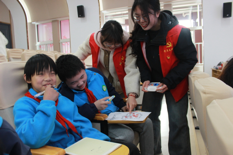 本次活动由人文学部学生第一党支部书记高悦、学生第二党支部书记郭旭林、辅导员老师程胜伟和张一能带队,组织了多名学生党员和志愿者参与。活动通过一系列互动环节,带给孩子们深切的关怀与温暖。