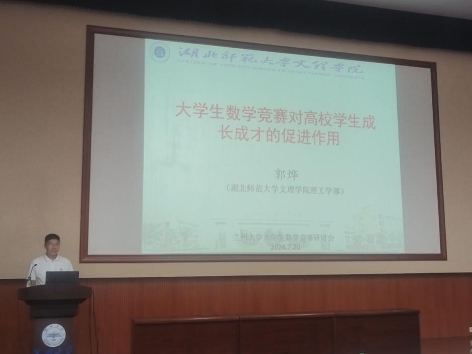 2024年全国大学生数学竞赛暑期研讨会于2024年7月18日至22日在甘肃省兰州市举行,本次会议由中国数学会和全国大学生数学竞赛工作组主办,兰州大学承办,兰州大学数学与统计学院和甘肃省数学会协办。BD半岛bandao·(中国区)官方网站数理通识教研室主任、第十五届大学生数学竞赛黄石地区负责人、第十五届大学生数学竞赛优秀组织者郭烨老师应邀参加会议。