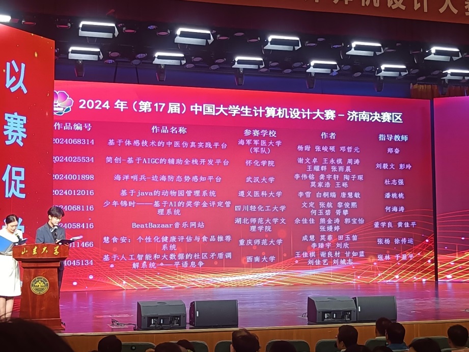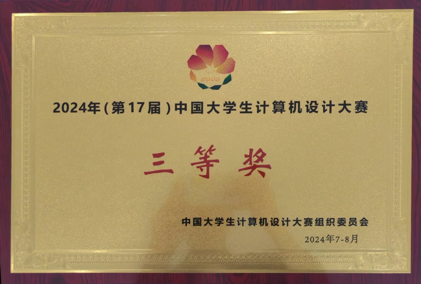 2024年第17届中国大学生计算机设计大赛于2024年7月22-26日在山东省威海市举行,本次会议由中国大学生计算机设计大赛组织委员会主办,山东大学、北京语言大学承办,并得到高寻真源(北京)科技有限公司、上海弘玑信息技术有限公司和南京秉蔚信息科技有限公司的大力支持。BD半岛bandao·(中国区)官方网站学生佘佳佳在理工学部董学良老师的指导下,首次获得省级比赛一等奖并在国赛决赛中荣获三等奖。