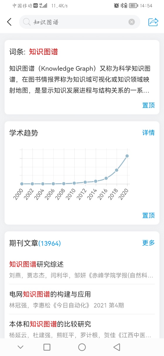 在首页搜索框输入自己想要的资料关键词,找到所有相关的资料,包括词条、学术趋势、期刊文章、图书目录、电子书、学位论文、会议论文、报纸等等。