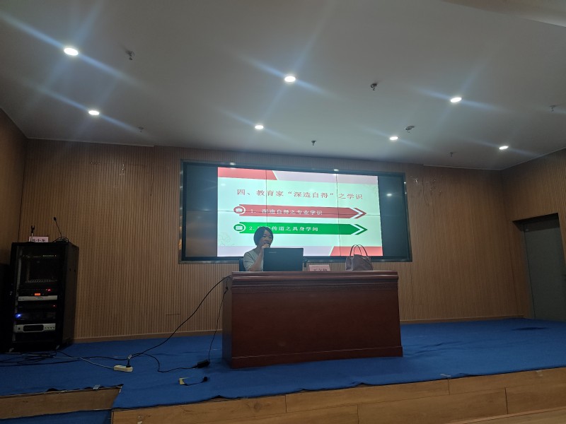 王老师以儒家核心经典《大学》为切入点,从“明明德、亲民、止于至善”的“三纲领”,讲到“格物、致知、诚意、正心、修身、齐家、治国、平天下”的“八条目”,强调“苟日新,日日新,又日新”。王老师又以“弘道之志”和“育人之乐”展开,详细讲解了教育家精神的引领作用,呼吁同学们修身修已,发奋图强,不断提升自我,树立“躬耕教坛、强国有我”的志向和抱负。