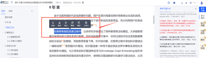(5) 全新升级文献知网节,优化页面布局,首屏揭示节点文献的内容特征及可读性,构建以单篇文献为节点的世界知识网络,刻画以节点文献为中心的主题发展脉络,满足用户对选定文献全面感知及主题扩展的需求。