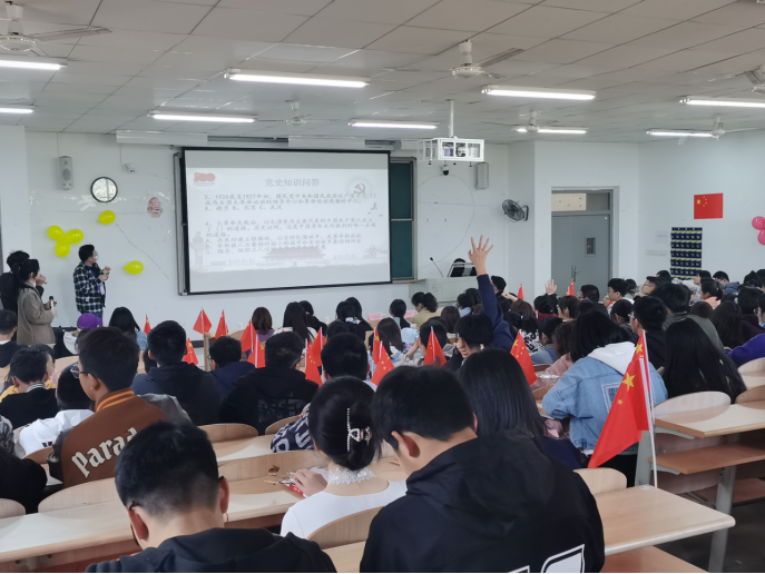 100年风雨兼程,100年岁月如歌。为庆祝我党100周年华诞,深化“不忘初心 牢记使命”主题教育成果,全面引导青年学子学党史、悟思想、办实事、开新局,4月9日中午,理工学部于1B312教室召开“重温党史,高唱赞歌”党史宣讲活动。出席此次活动的有肖圣芳书记、闵娜老师、朱翠红老师、董诗琪老师、张驰老师、徐露老师,理工学部学生党员及同学,由主持团许纪、杨鸿主持。